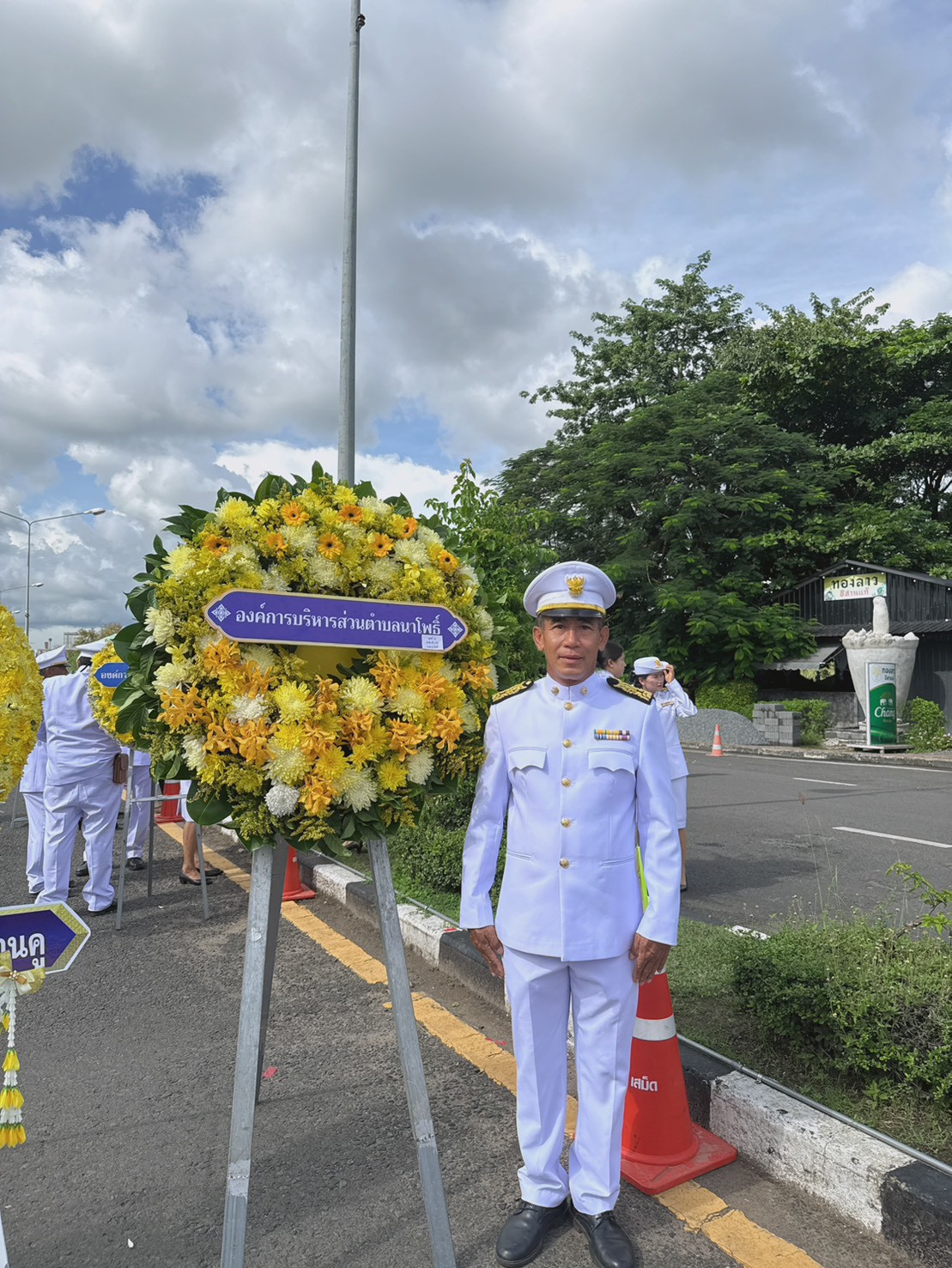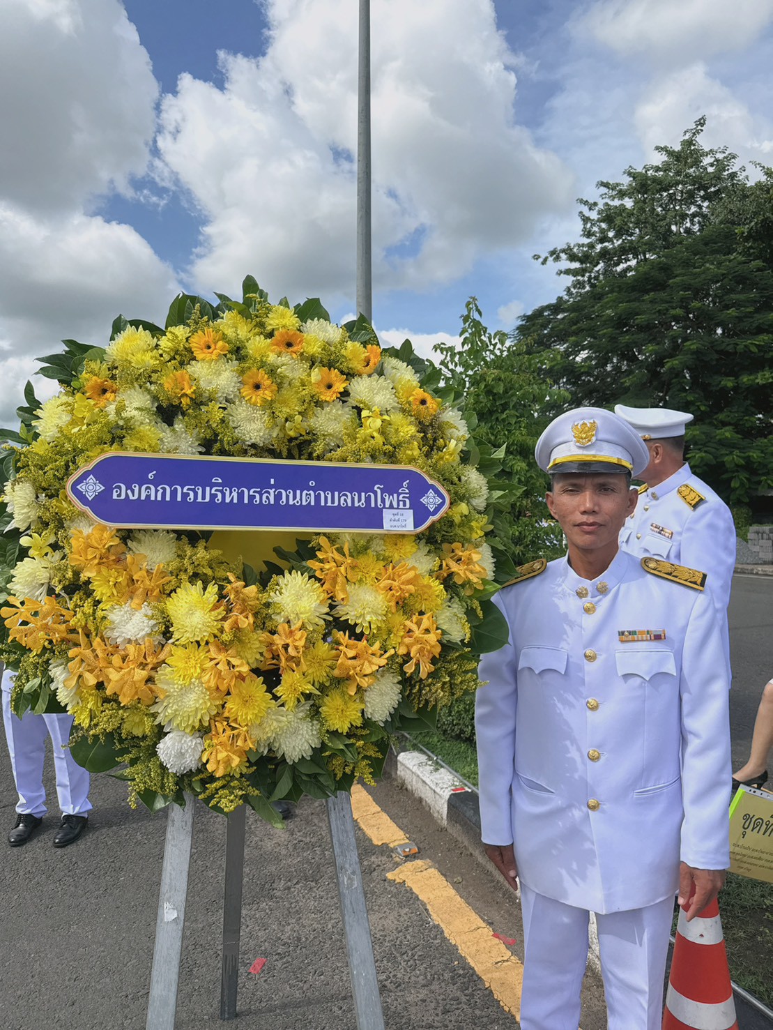 นายไสว พลสม นายกองค์การบริหารส่วนตำบลนาโพธิ์ มอบหมายให้นายศิลป์ พลแสน , นายชำนาญ สังฆเวช รองนายกองค์การบริหารส่วนตำบลนาโพธิ์ พร้อมด้วย นางกณิศา จันทร์งาม ปลัดองค์การบริหารส่วนตำบลนาโพธิ์ นายอภิชาติ ทบลม รองปลัดฯ และข้าราชการ เข้าร่วมพิธีวางพวงมาลาและถวายความเคารพเบื้องหน้าพระบรมฉายาลักษณ์พระบาทสมเด็จพระบรมชนกาธิเบศร มหาภูมิพลอดุลยเดชมหาราช บรมนาถบพิตร ณ พระบรมราชานุสาวรีย์ พระบาทสมเด็จพระพุทธยอดฟ้าจุฬาโลกมหาราช (รัชกาลที่ 1)